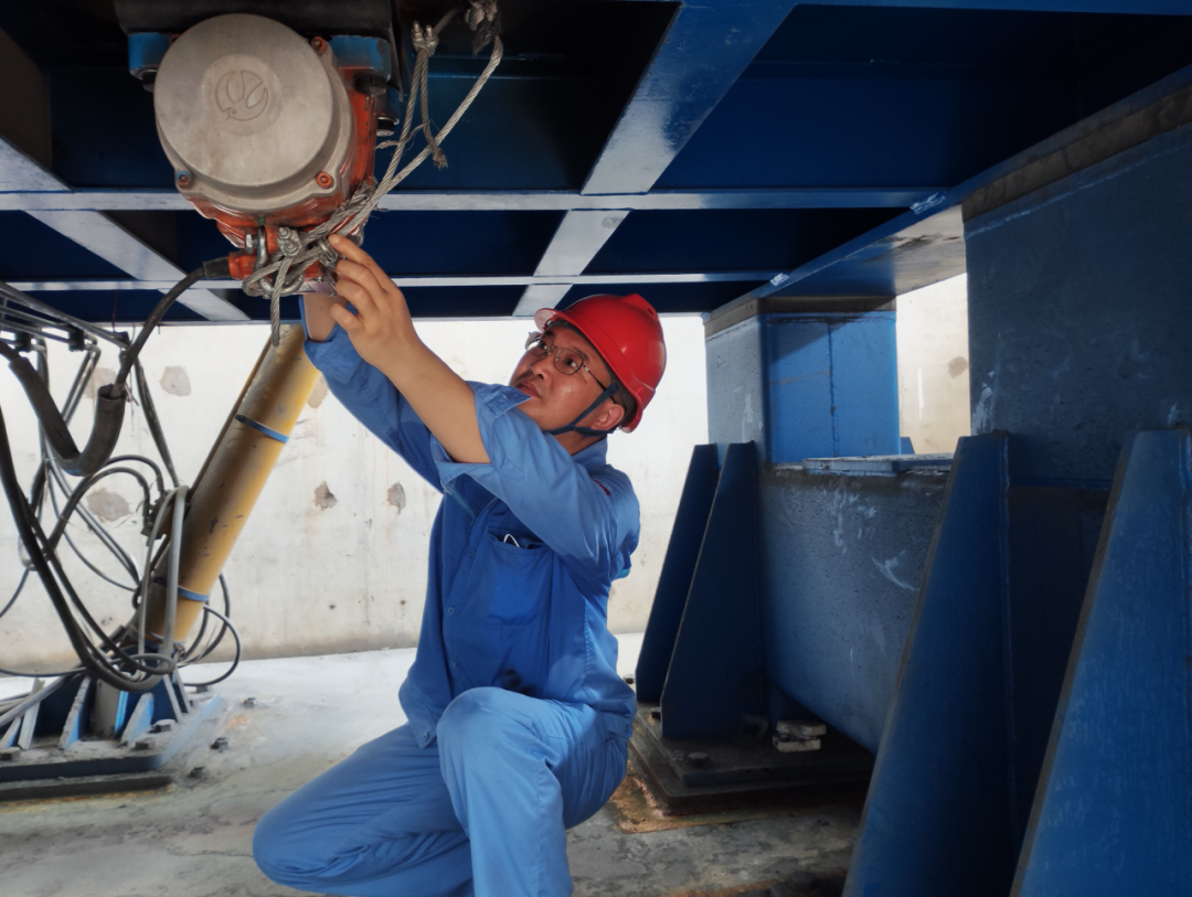 動(dòng)力廠員工打掃變電站真空開(kāi)關(guān)衛(wèi)生、緊固螺絲